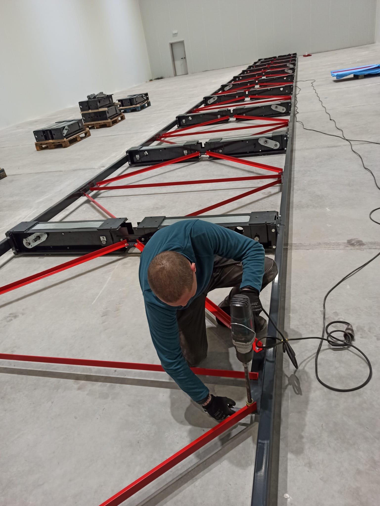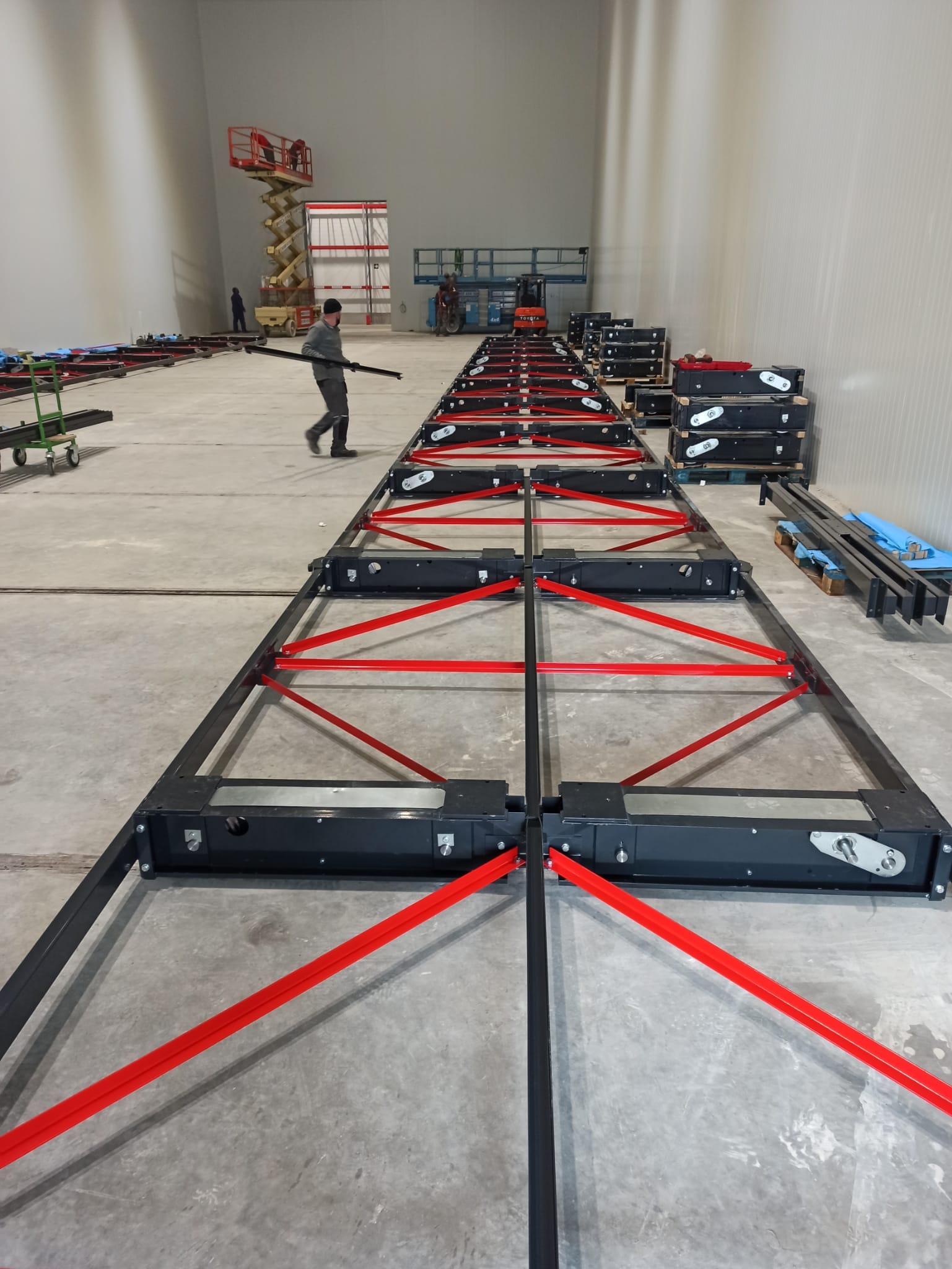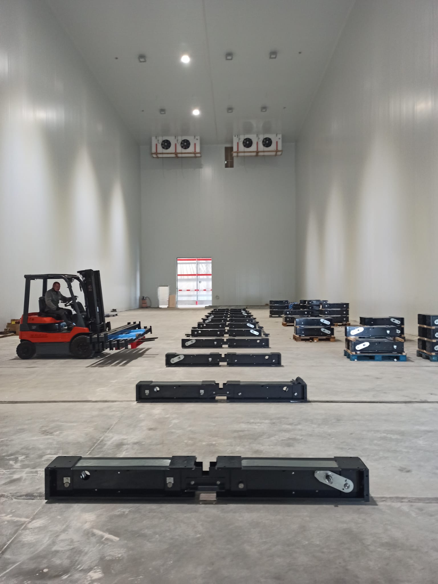 MONTAJE DE 1 CÁMARA DE CONGELADOS CON 2 VAGONES DE 5 MÓDULOS CADA UNO, CON UNA CARGA MÁXIMA DE 176.000 KG POR VAGÓN (352.000 KG EN TOTAL)